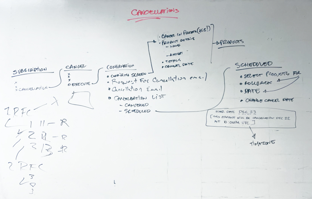We wired the whole process of cancelling a product from the very concept, to each of the steps in detail in order to define each step as needed.